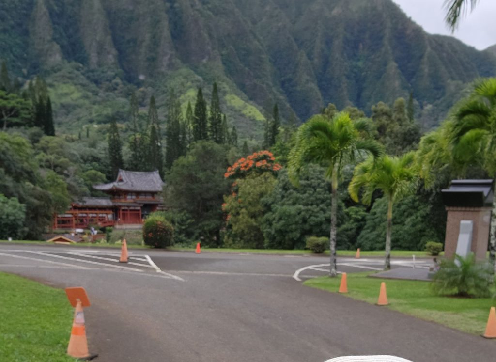 I wanted to get out of Honolulu to see a bit of the countryside, so I took the city bus out to the Byodo-In Temple, about an hours bus ride out through a forest reserve and smaller towns. I thought I was tracking my progress along the route with Google maps, but somehow I missed my stop. When I realised my mistake, I asked the driver and he said it was back where everyone else got off! Luckily the bus was near the turn around point and I was able to get off when he returned. It was a little walk up to the temple, through the Valley of the Temple Memorial Park. The temple is set against steep, forest covered mountains and was built in 1968, a replica of a temple by the same name in Japan to commemorate the 100th anniversary of the first Japanese immigrants.